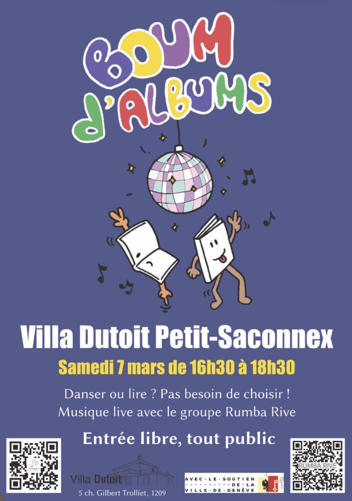 2026 7 Mars – Boum d’albums Genève 29 Avril Maison de Quartier de St-Jean Genève